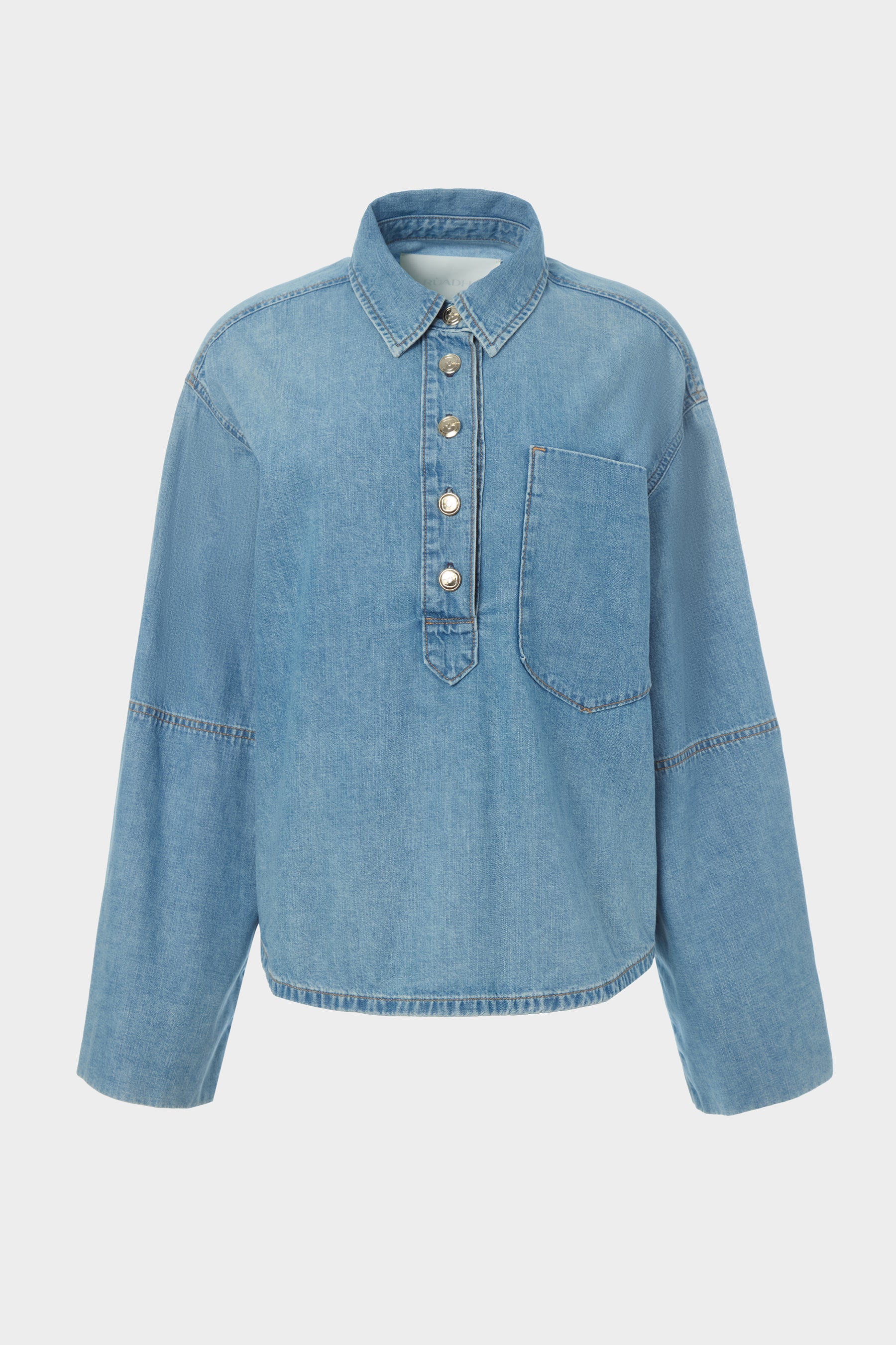 Crafted in 100% organic cotton, the Finlay shirt is a classic oversized popover shirt. The fit features double layer sleeves for a more tailored structured look. Featuring our signature semi-precious branded gold hardware, this shirt was made in LA at Saitex, a 4.0 smart factory in Los Angeles.