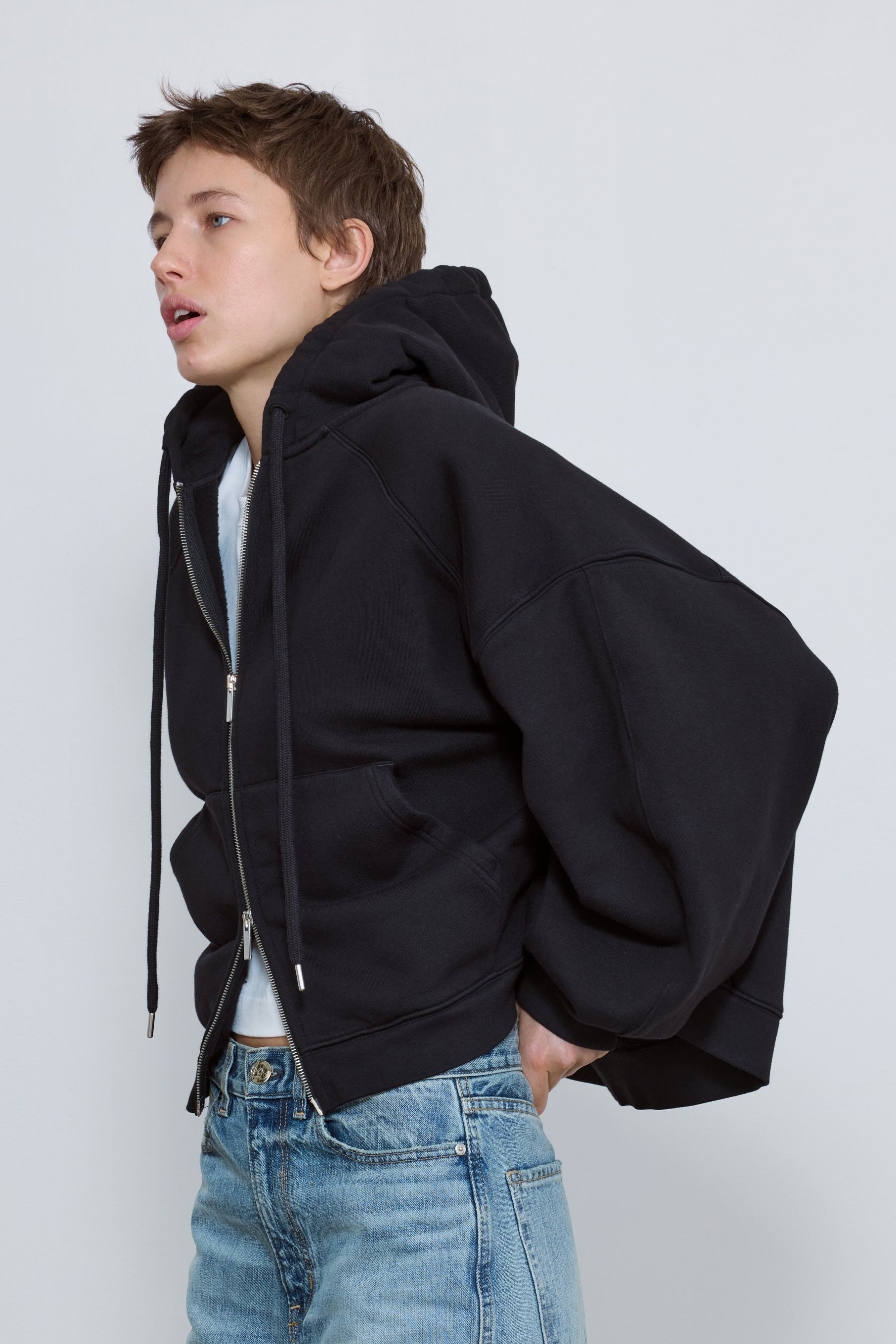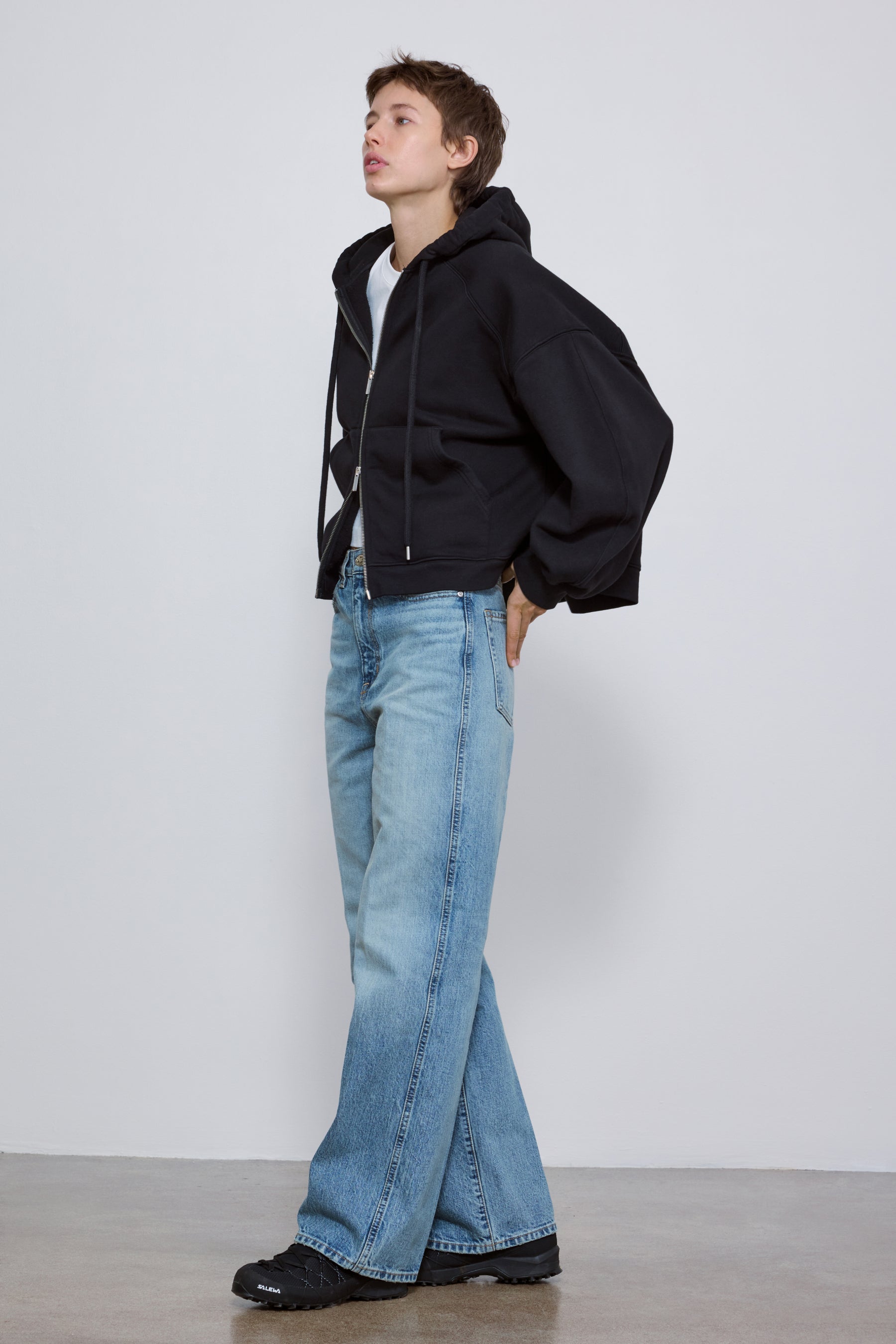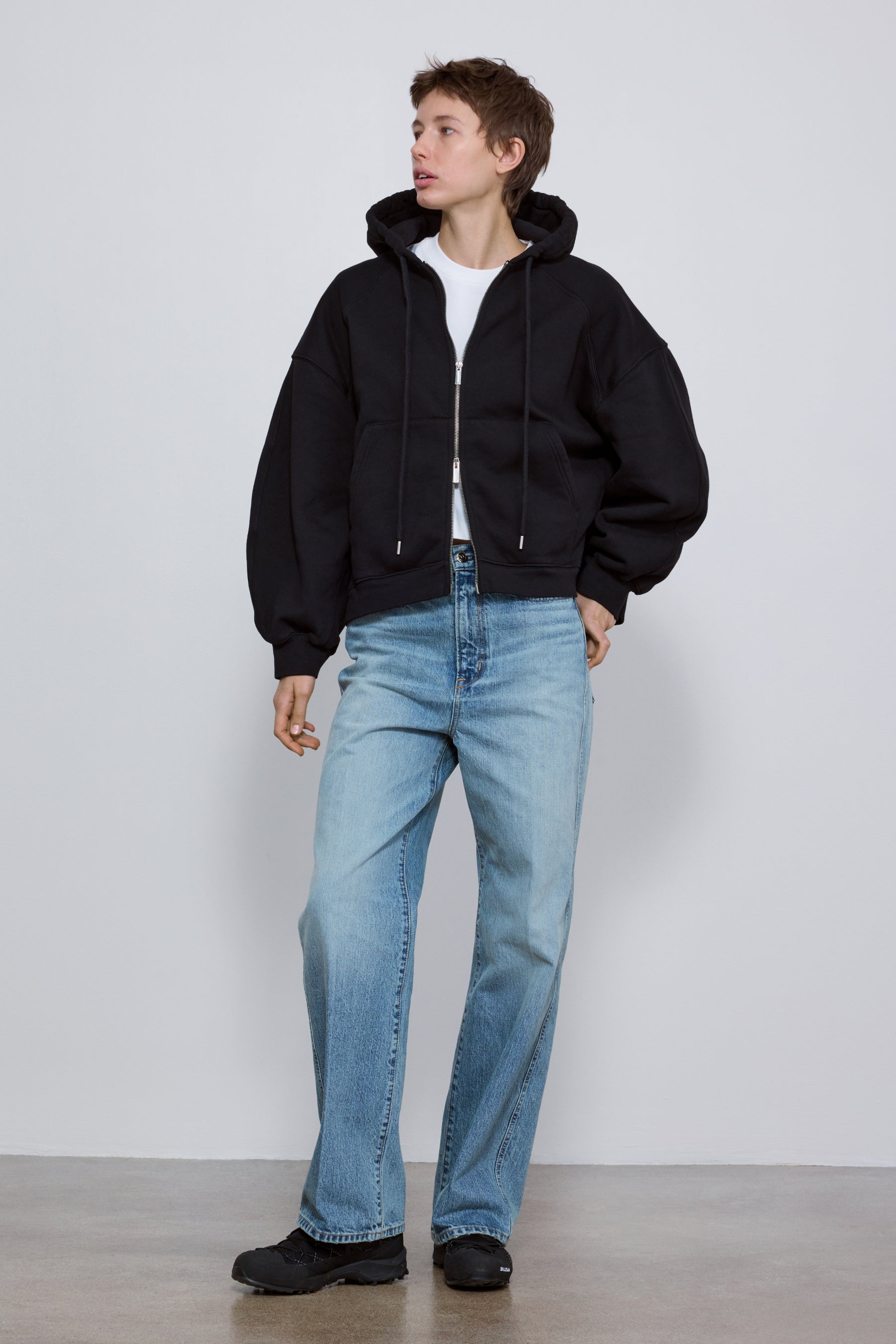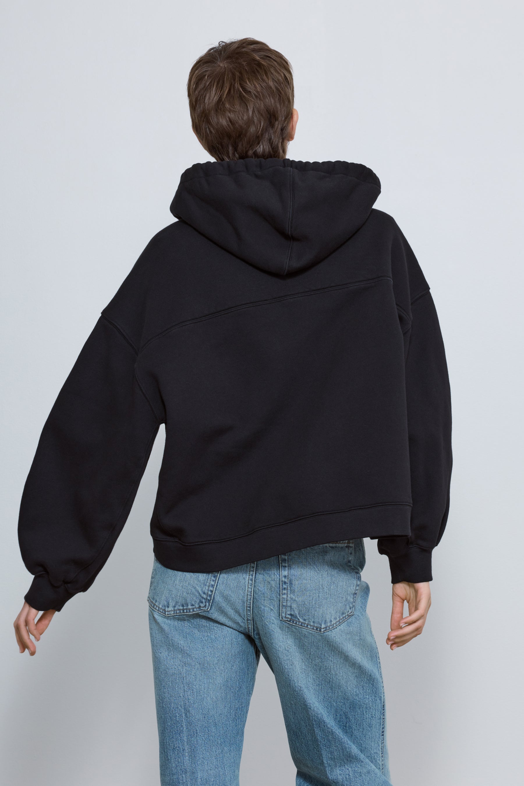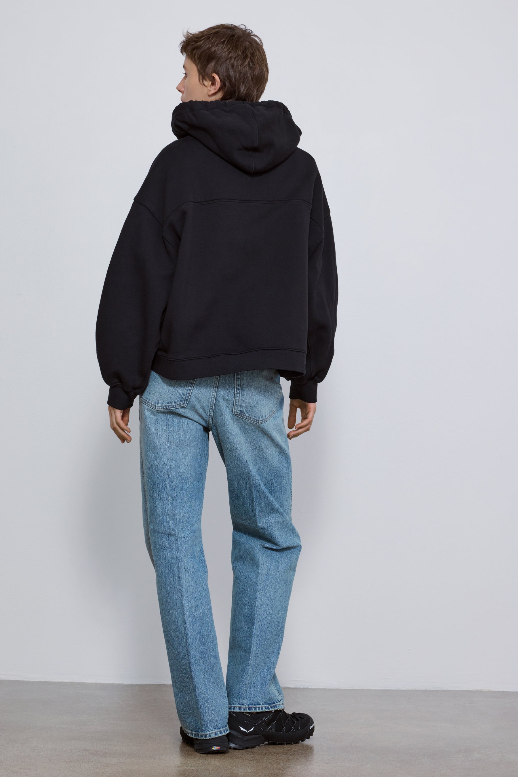 A softly-rounded silhouette, cut in washed organic cotton. The fluid shape has the ease and versatility of a classic hoodie but with thoughtful, sculptural detailing. The Scott features a two-way zipper for styling options, drawcord at hood to cinch, and RÙADH emblem embroidery at sleeve edge. Handcrafted in Portugal.